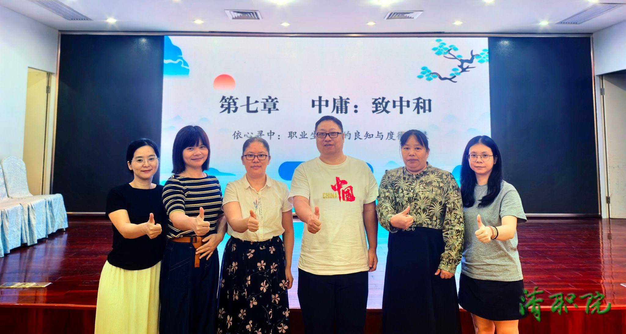 吴兆平、刘建珍、徐玲丽、黎淑卿、钟桂兴和黄享辉6名教师共同设计的专题课程《依心寻中:职业生涯中的良知与度衡智慧》获得研修班专家一致好评,荣获结训考核第二名。该课程深度融合阳明心学与中庸思想,将“致良知”与“执两用中”理念创新运用于职业生涯决策与实践平衡,展现出扎实的理论功底与良好的教学转化能力。
